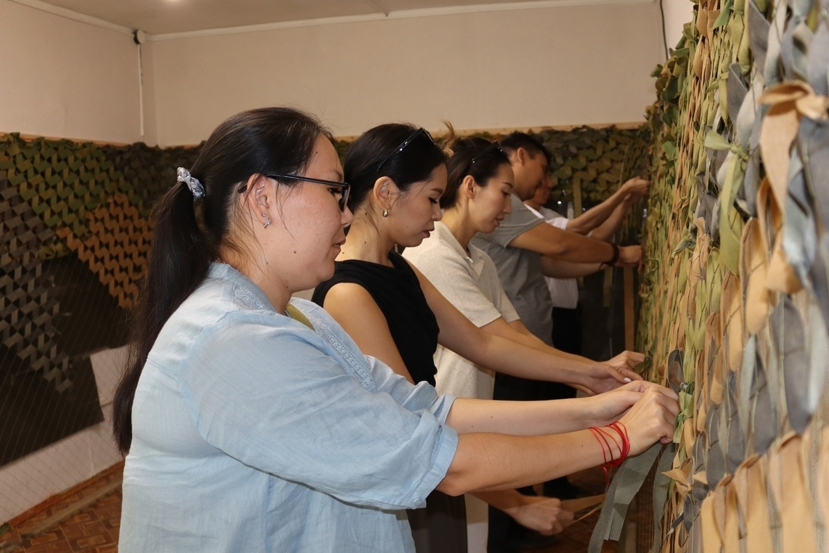 Жители Калмыкии плетут маскировочные сети для воинов