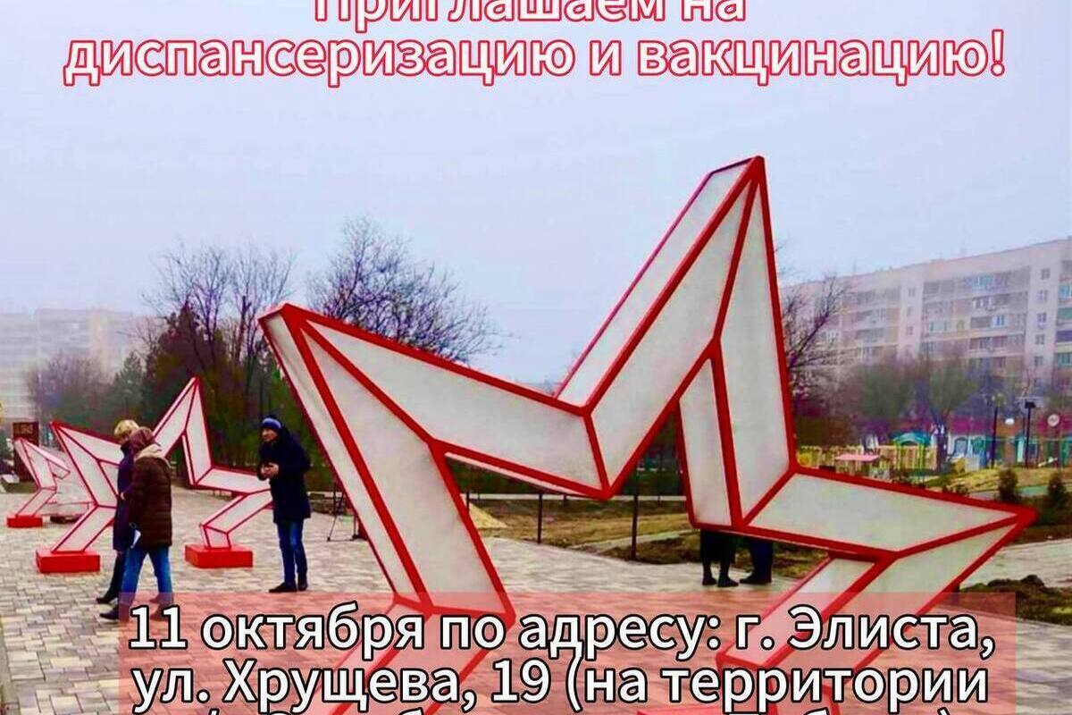 11 октября диспансеризацию для взрослых проведут еще в одном районе Элисты. На этот раз на территории кинотеатра «Октябрь» и парка Победы. Жителей восточной части столицы и не только врачи горполиклиники ждут с 9 до 13 часов.