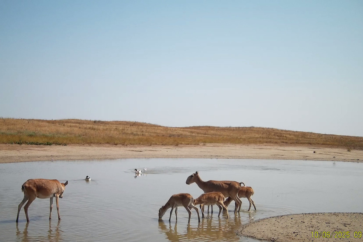 Фотоловушка заповедника Черные земли на колодцах Савха-Худук запечатлела привычную жизнь. Воды артезианской скважины, прогретые солнцем, становятся местом притяжения для самых разных обитателей степи.