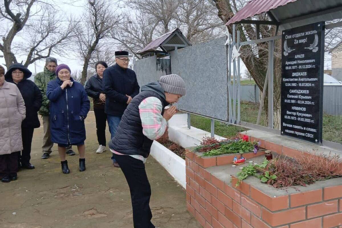 В поселке Хар Толга Яшкульского района Калмыкии прошло торжественное мероприятие, посвященное памяти земляков, отдавших свои жизни в ходе специальной военной операции. Была открыта обновленная мемориальная плита, на которой увековечены имена Аркадия Араева, Константина Диджаева, Евгения Сангаджиева и Виктора Няминова. За проявленные отвагу и самоотверженность герои были посмертно награждены орденами Мужества.