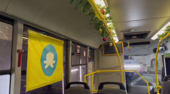 Муниципальные автобусы в Элисте уже наполнились волшебством праздника. Со вчерашнего дня их салоны с праздничным декором: ёлочные ветви, яркие игрушки и блестящая мишура. А окна автобусов украшены новогодними наклейками с поздравлениями на калмыцком языке, которые добавляют ещё больше праздничного настроения.
